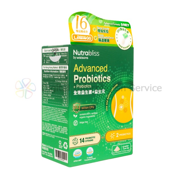 - ワトソンズ社のNutrablissによる、免疫強化と腸内環境・消化システムの健康維持をサポートするプロバイオティクスサプリメントです。