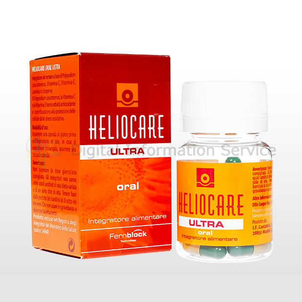 - ヘリオケア ウルトラカプセルオーラルは「飲む日焼け止め」で人気のヘリオケアのウルトラバージョンです。主成分のFernblockが通常の2倍(480mg)となっています。また、抗酸化力を高めるといわれているビタミンCやビタミンE、強い抗酸化作用を高めるといわれているルテイン、活性酸素を減らすといわれているリコピンなどが配合されています。